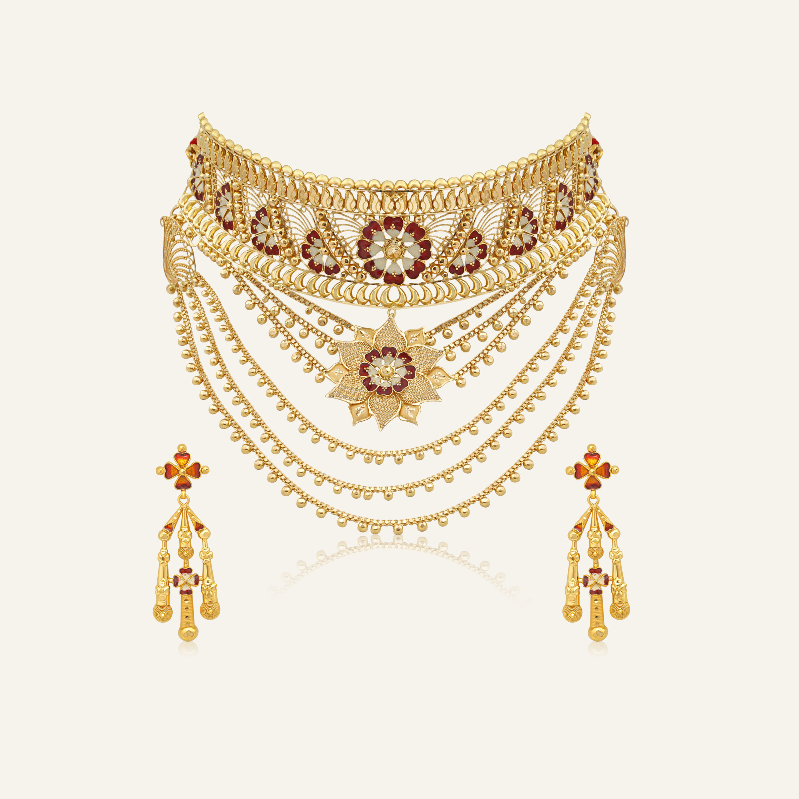 Meenakari Royalty, at its best. The set combines the magic of maroon, gold and ivory meenakari work.