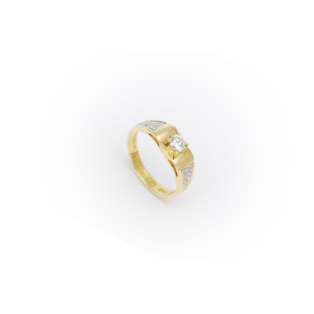 A ring fit for the king! Perfect for a wedding occasion or an anniversary gift, this ring comes with a solitaire and the shoulders studded with smaller pieces.