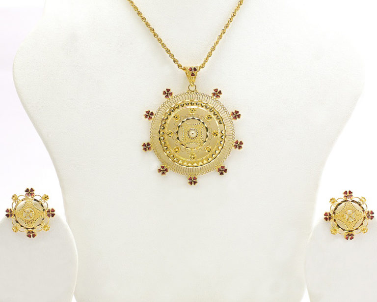 In the mood for absolute tradition? This one is for you! The weights given are inclusive of earrings that come with the pendant.