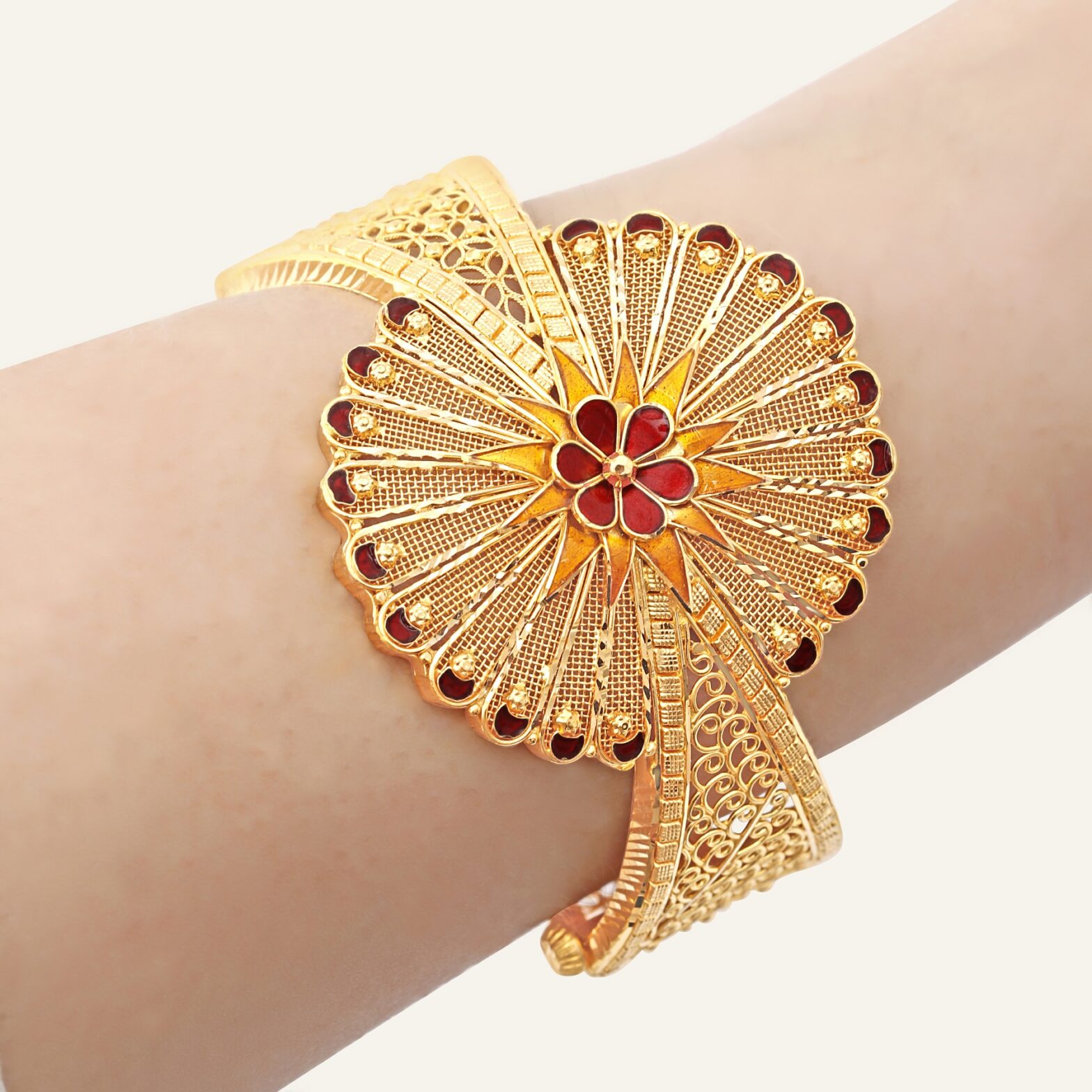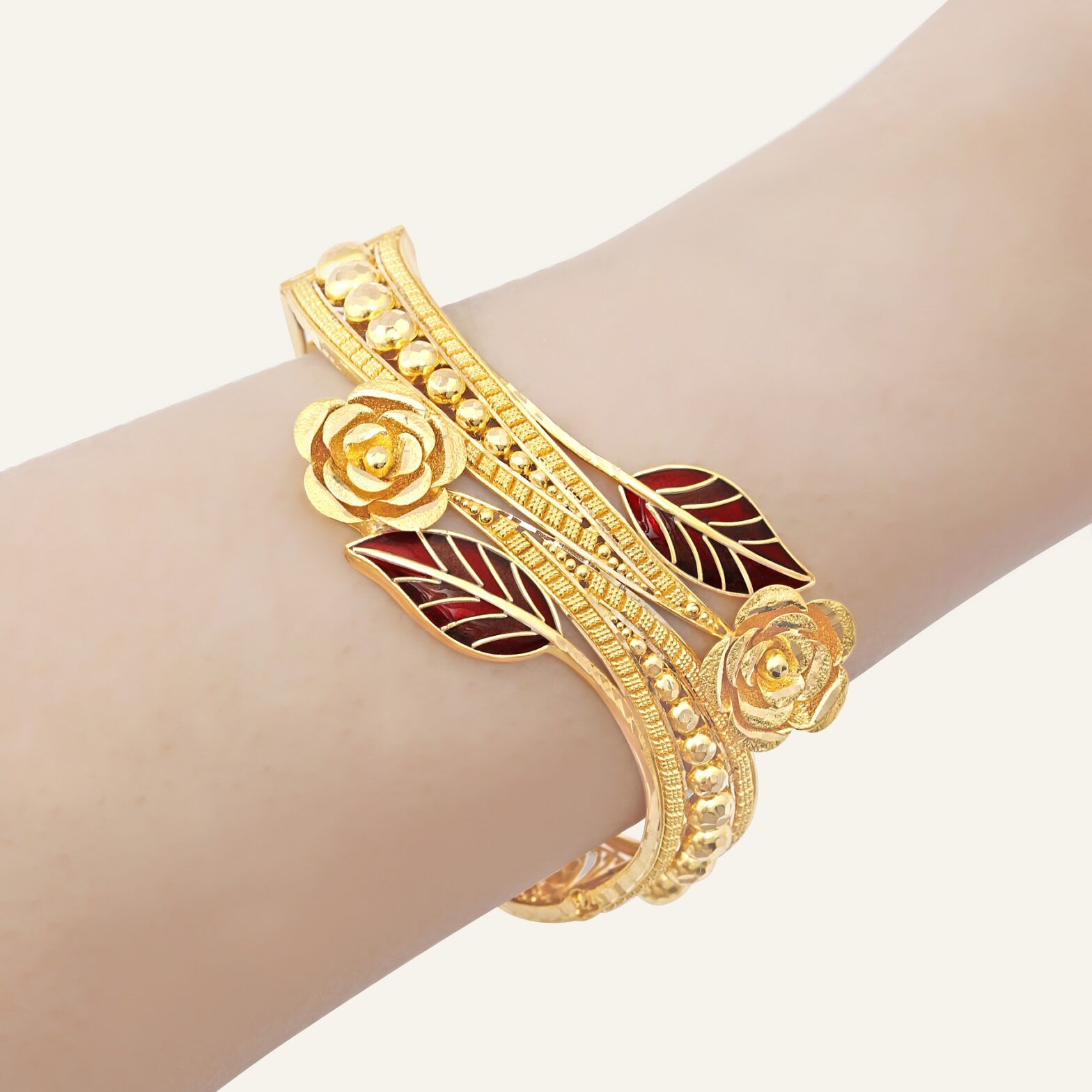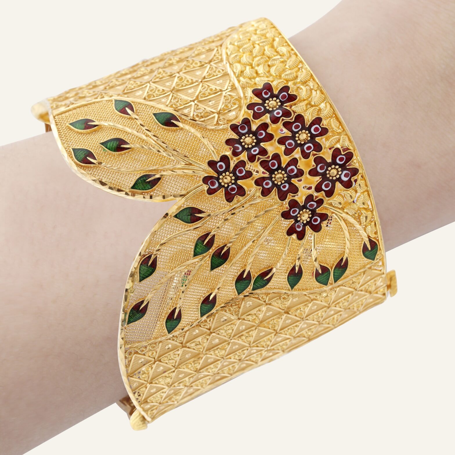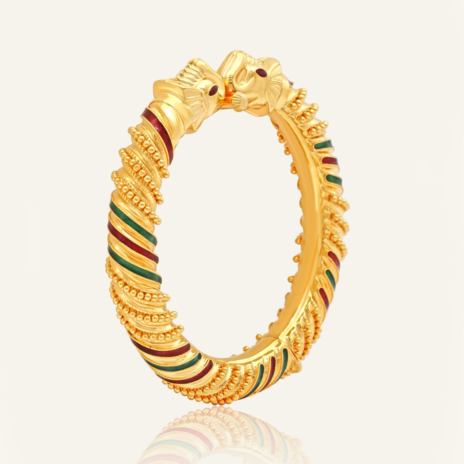 The magic combination of red and green meenakari combined with the classiness of the Bengali Royal Bala.